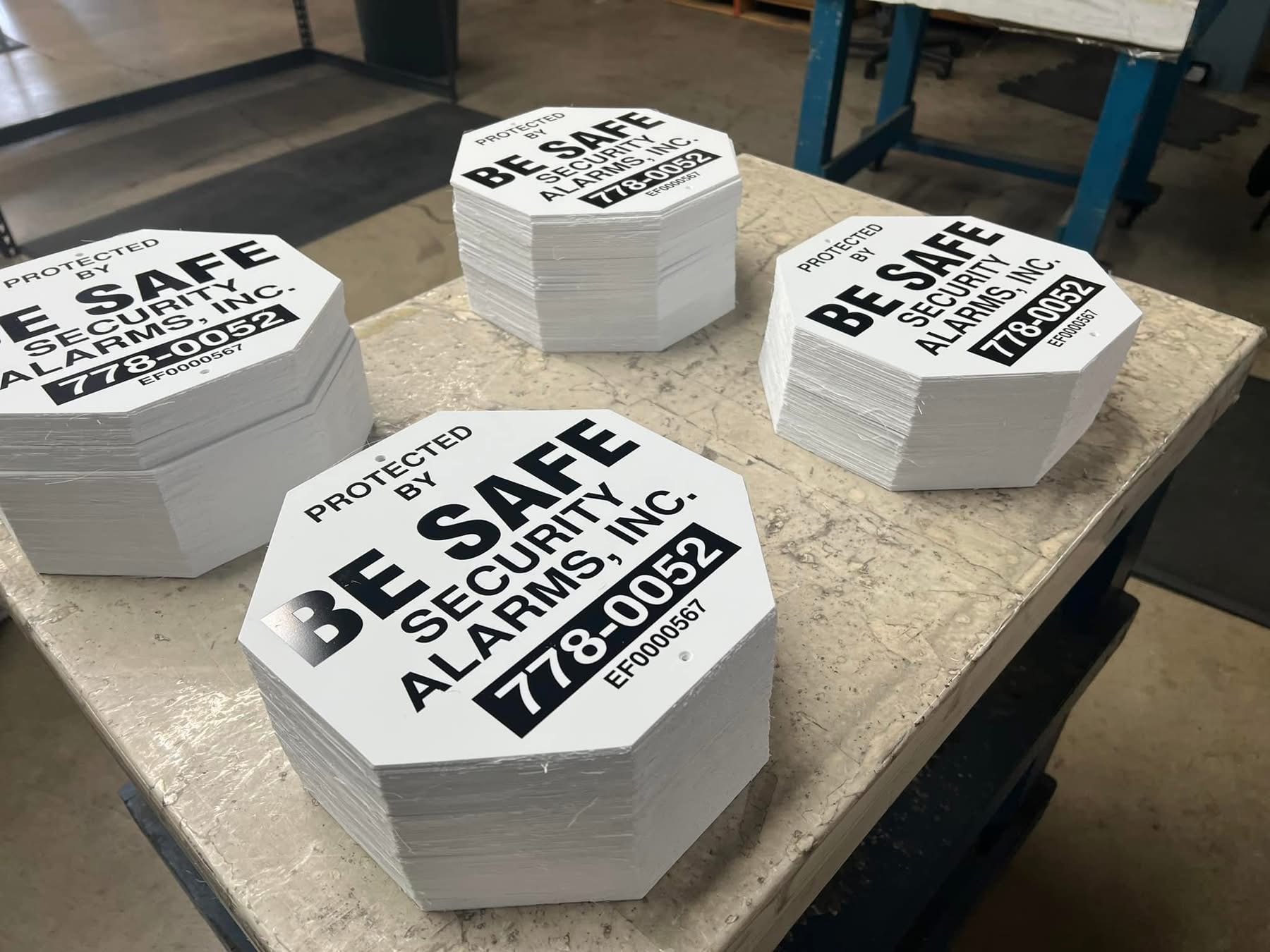 Professional security sign featuring a elongated octagon design with 1 color. Perfect for security businesses. Get a free quote today!