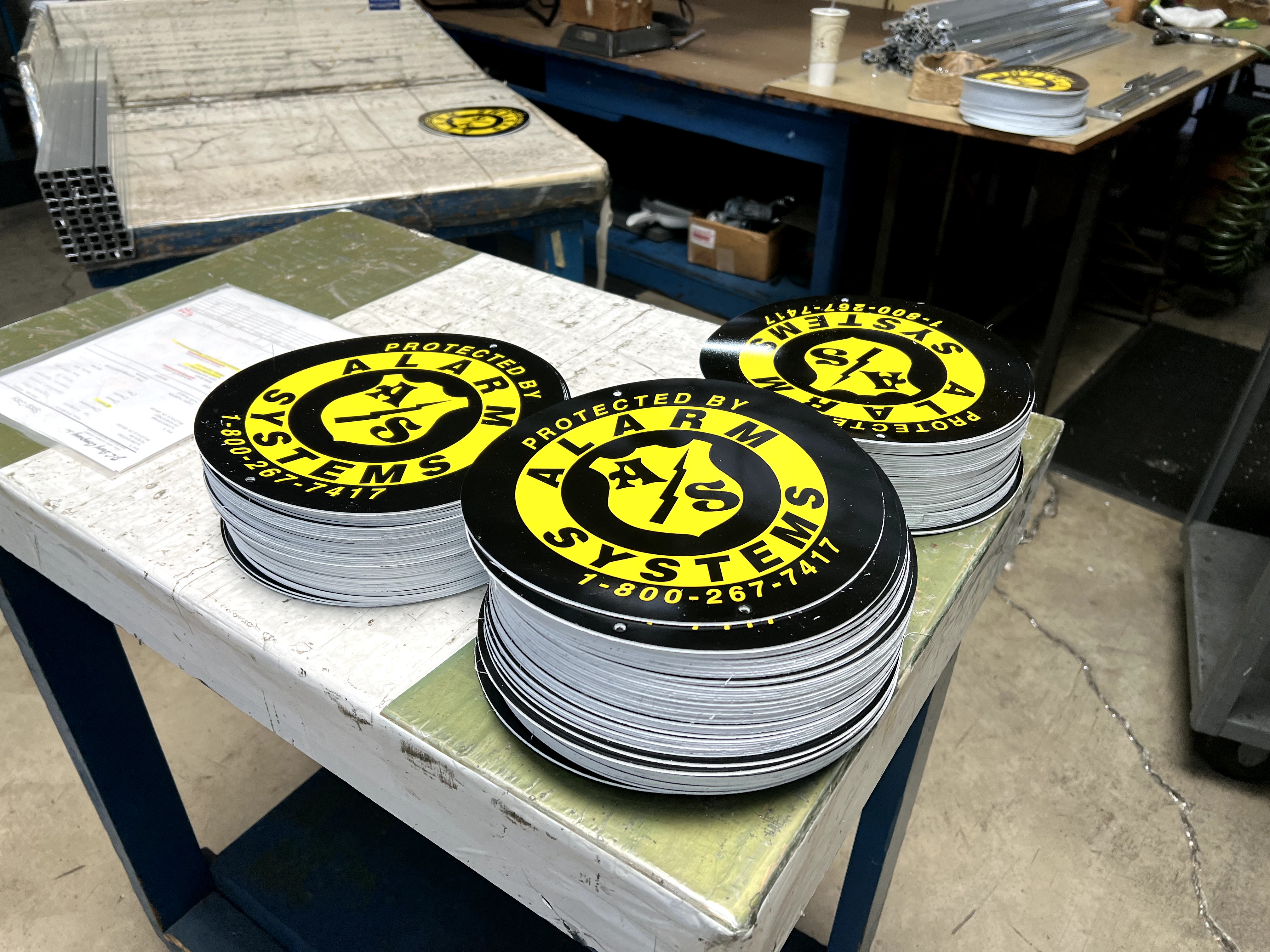 Professional security sign featuring a circle design with 2 colors. Perfect for security businesses. Get a free quote today!