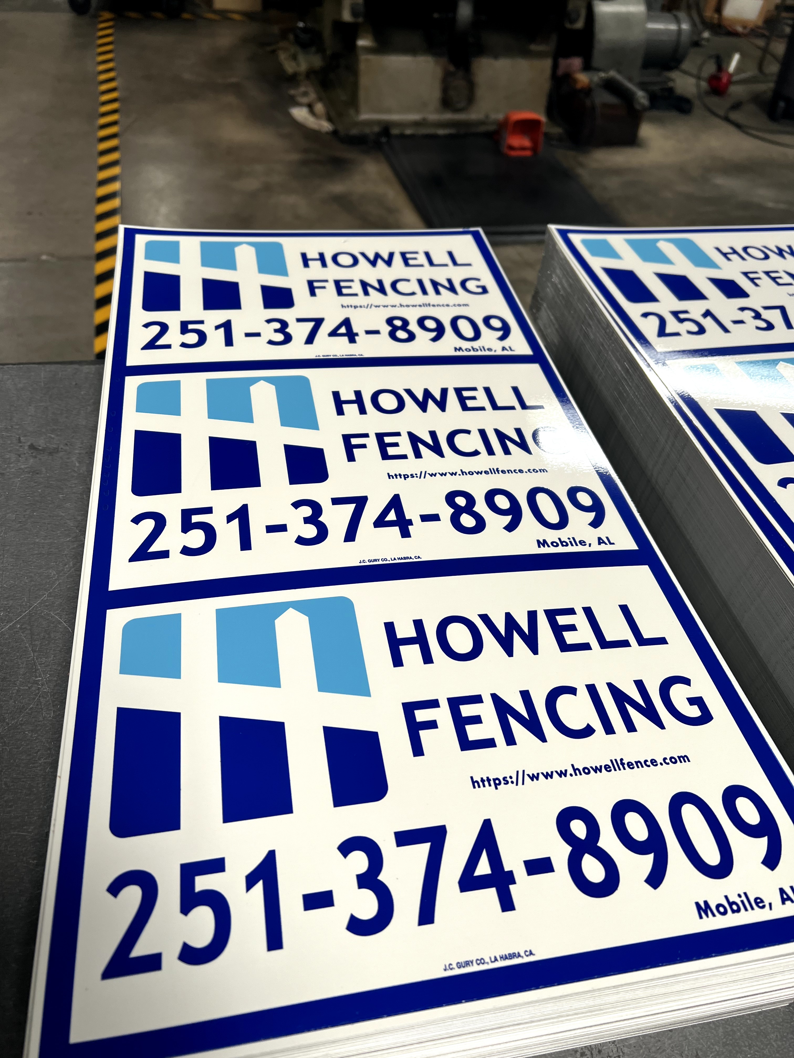 Custom blue and blue rectangle sign for fence businesses