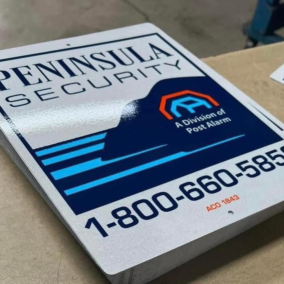 Professional security sign featuring a rectangle design with 3 colors, 2 mounting holes, rounded corners. Perfect for security businesses. Get a free quote today!