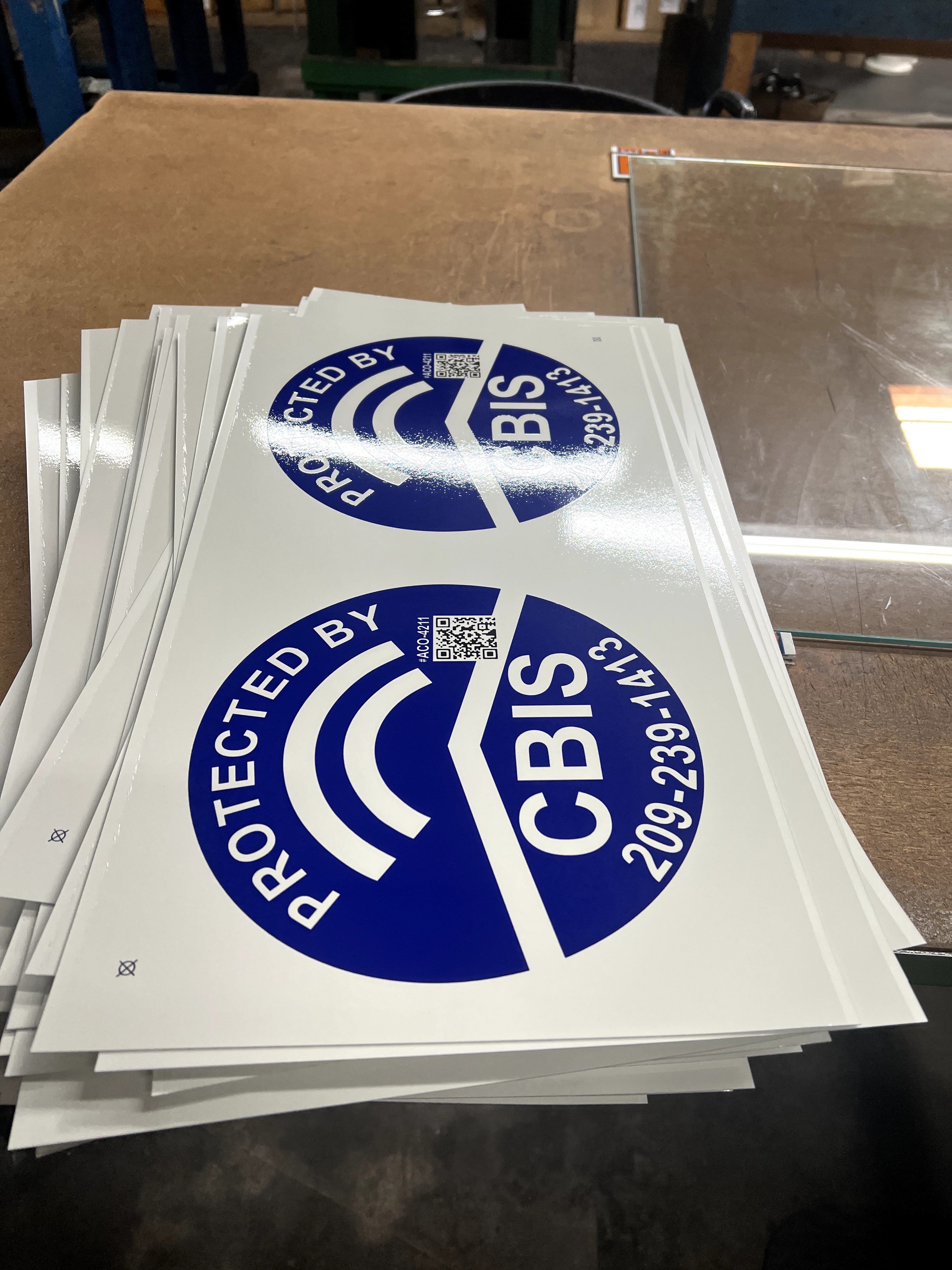 Professional security sign featuring a circle design with 1 color. Perfect for security businesses. Get a free quote today!