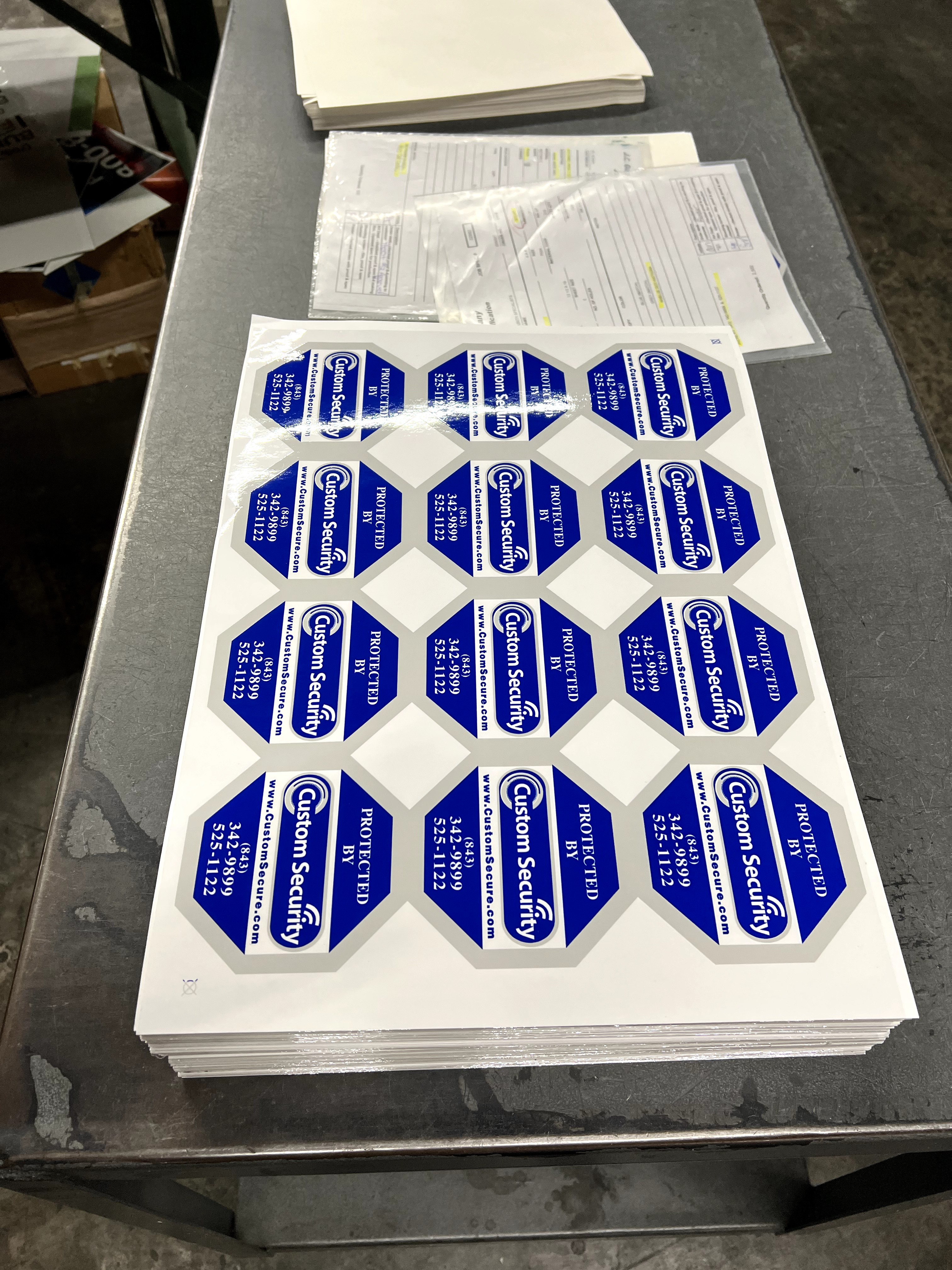 Professional security sign featuring a elongated octagon design with 1 color. Perfect for security businesses. Get a free quote today!