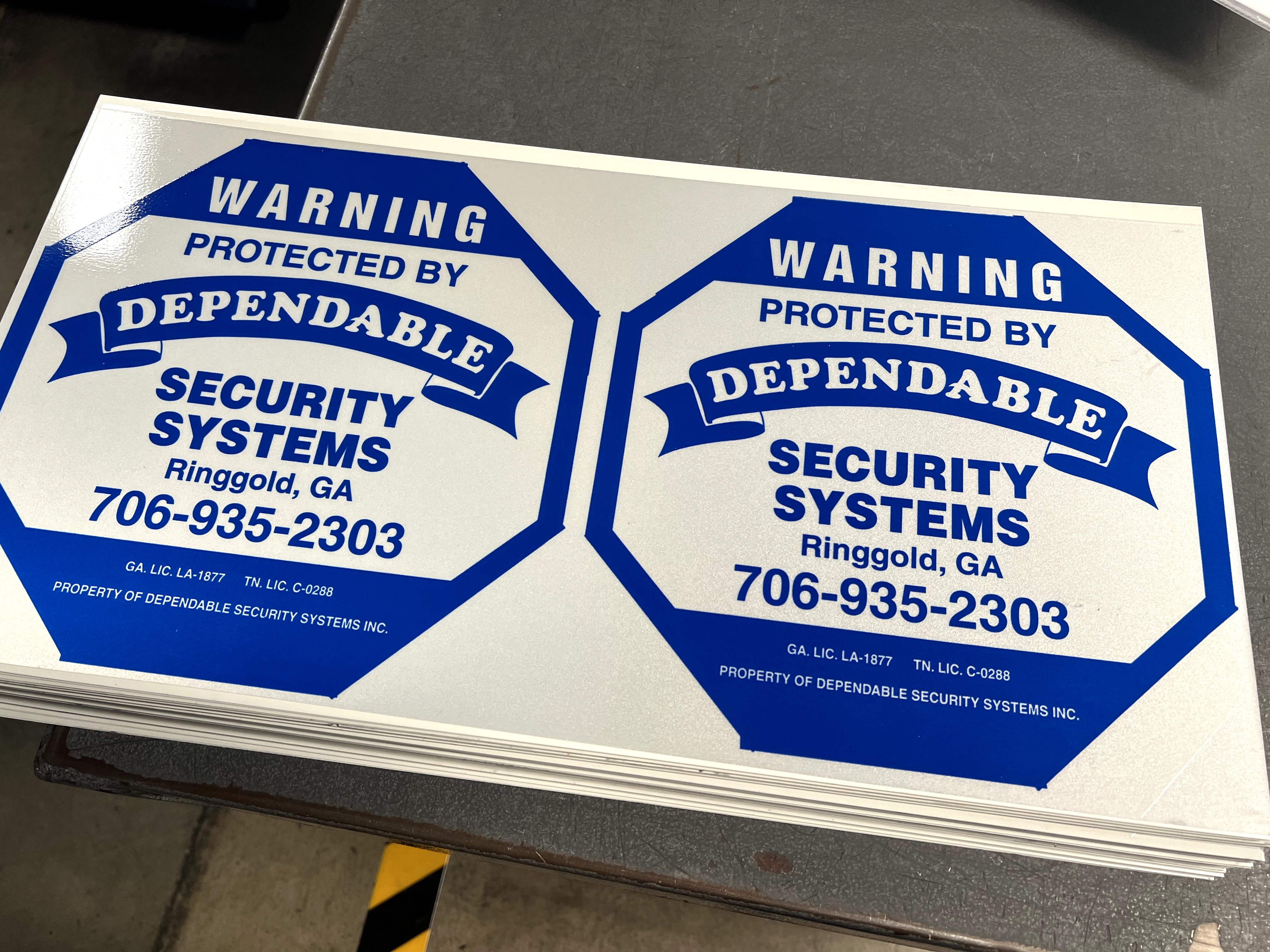 Professional security sign featuring a octagon design with 1 color. Perfect for security businesses. Get a free quote today!