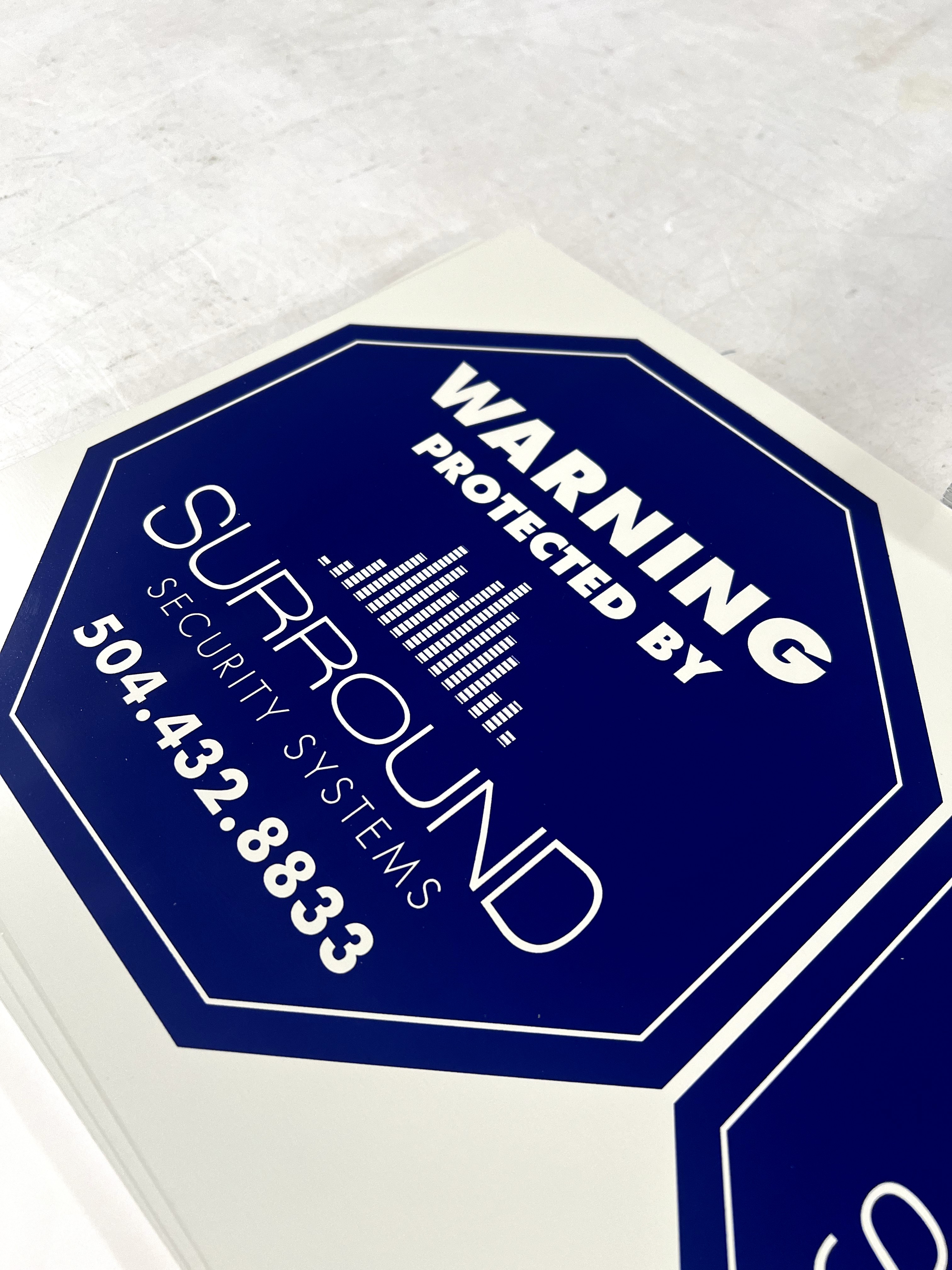 Custom blue and white octagon sign for security businesses