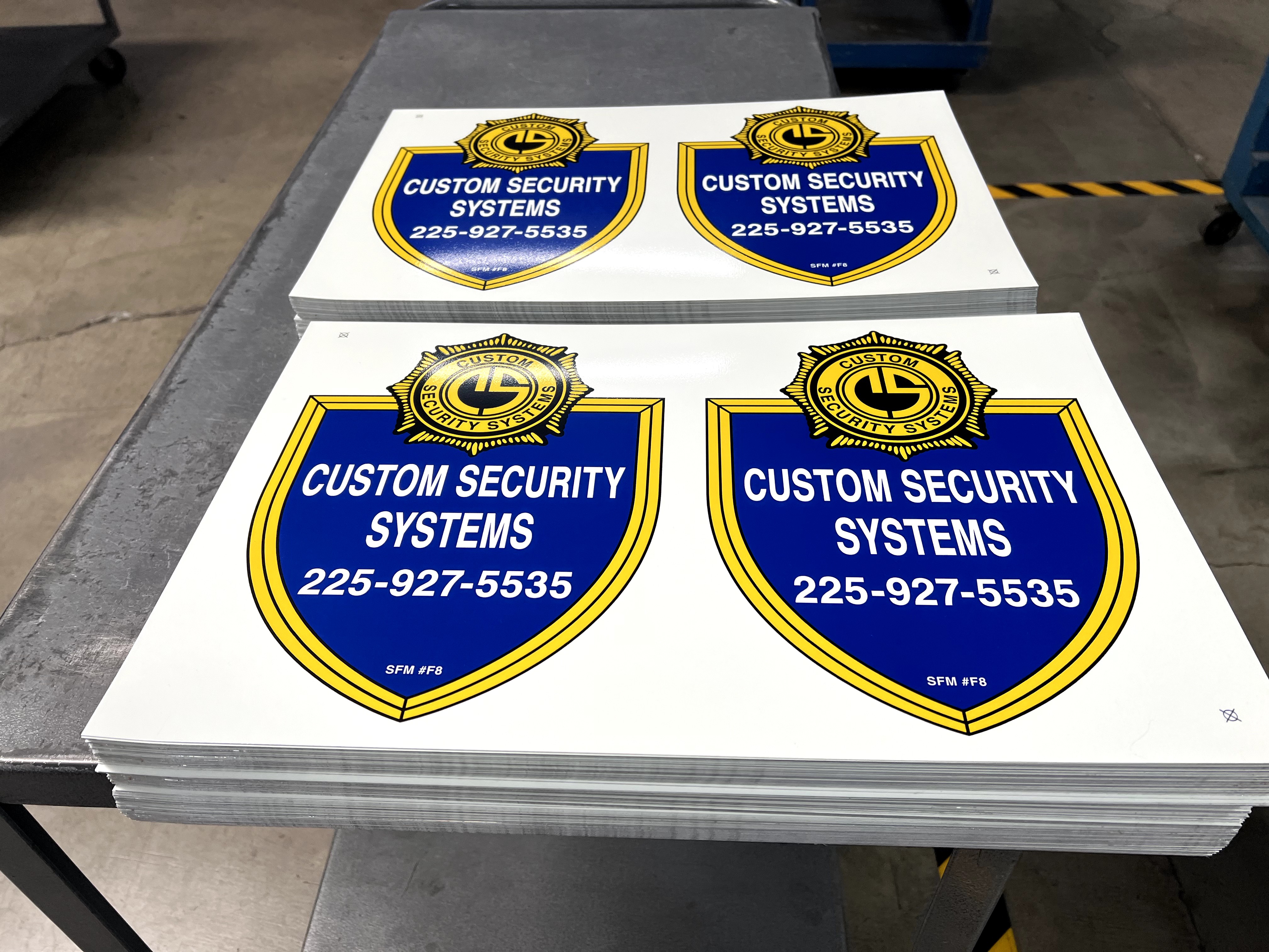 Professional security sign featuring a shield design with 2 colors. Perfect for security businesses. Get a free quote today!