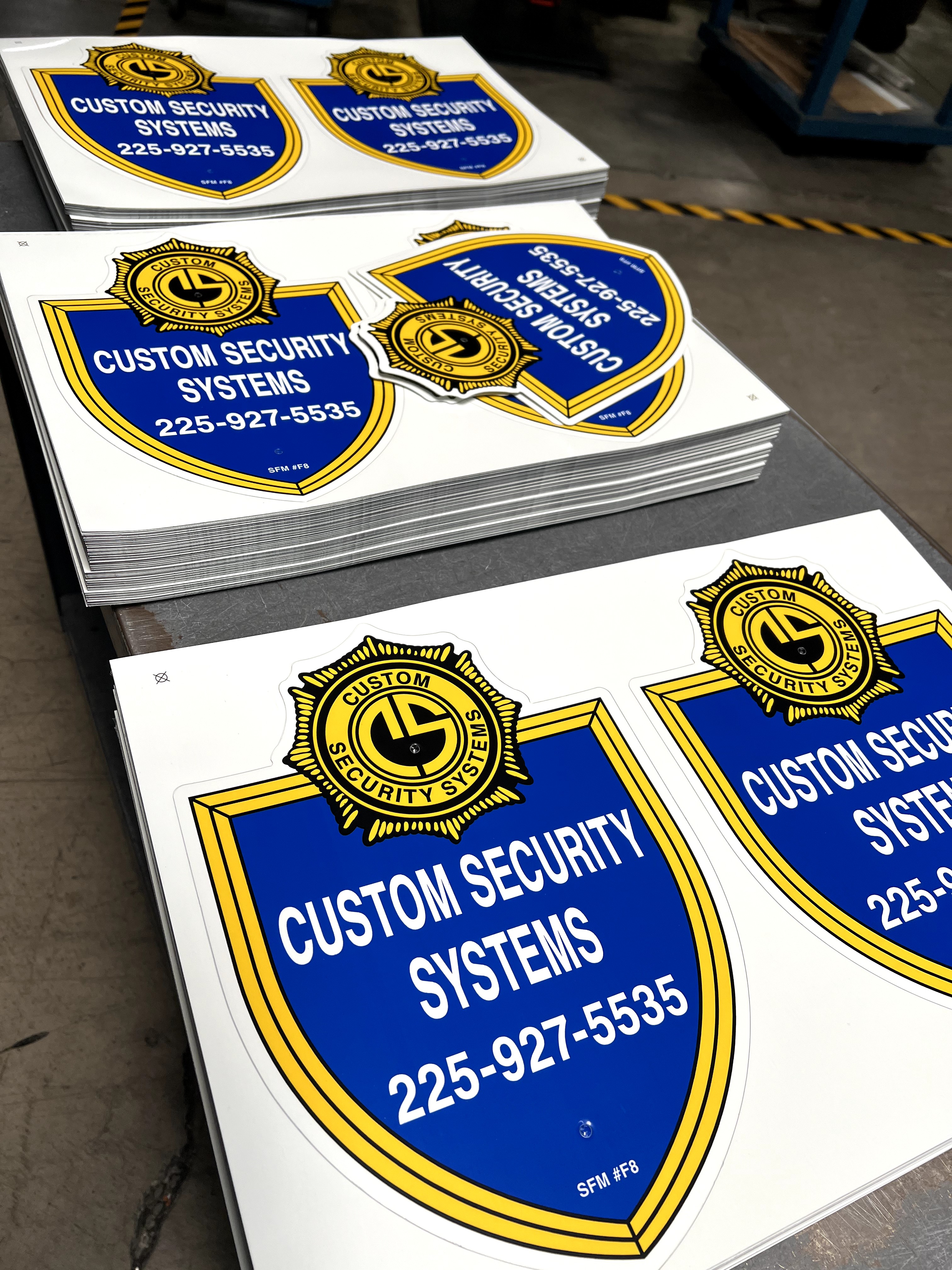 Custom blue shield Security Sign | 2 Color Design