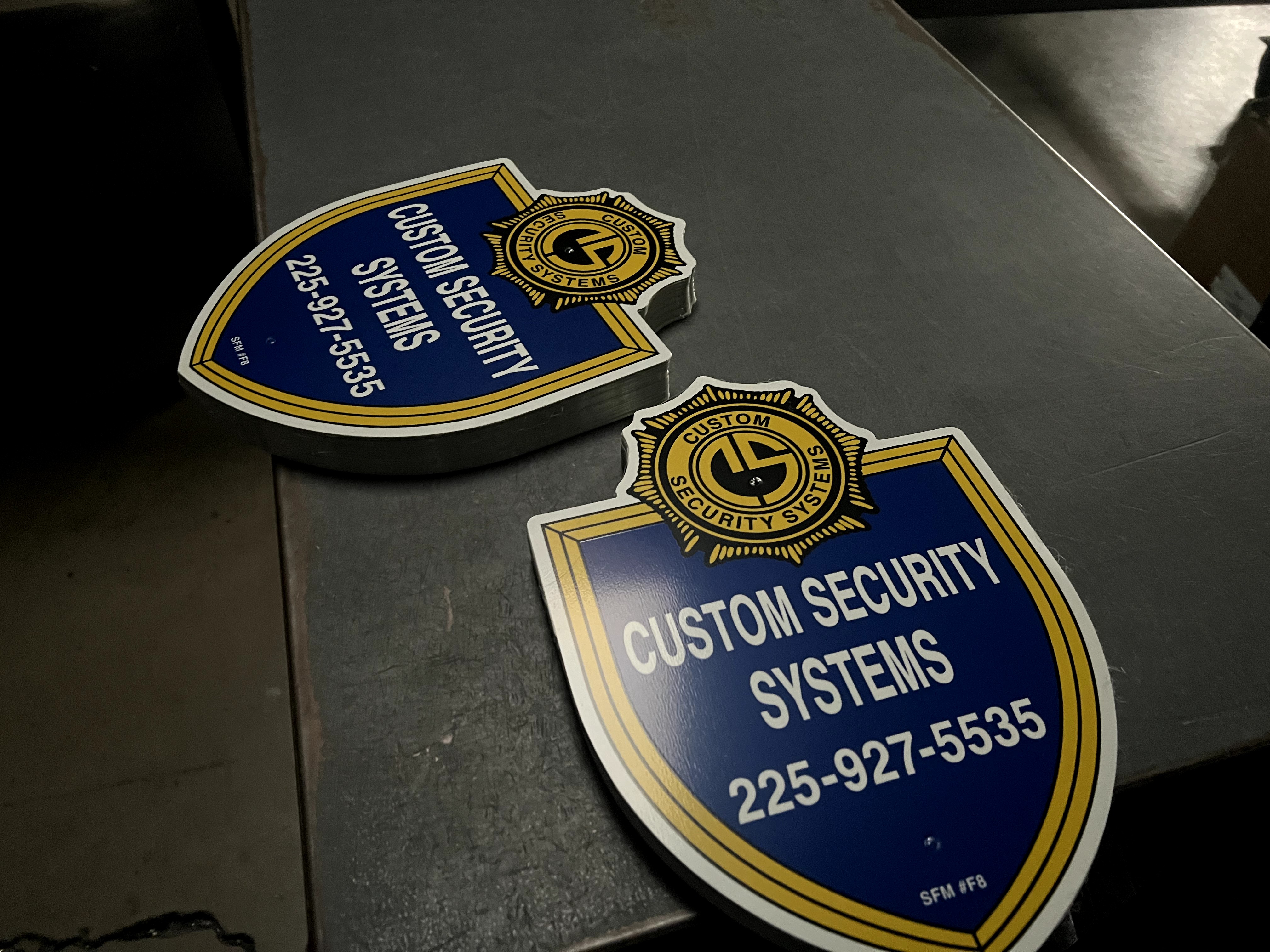 Professional security sign featuring a shield design with 3 colors. Perfect for security businesses. Get a free quote today!
