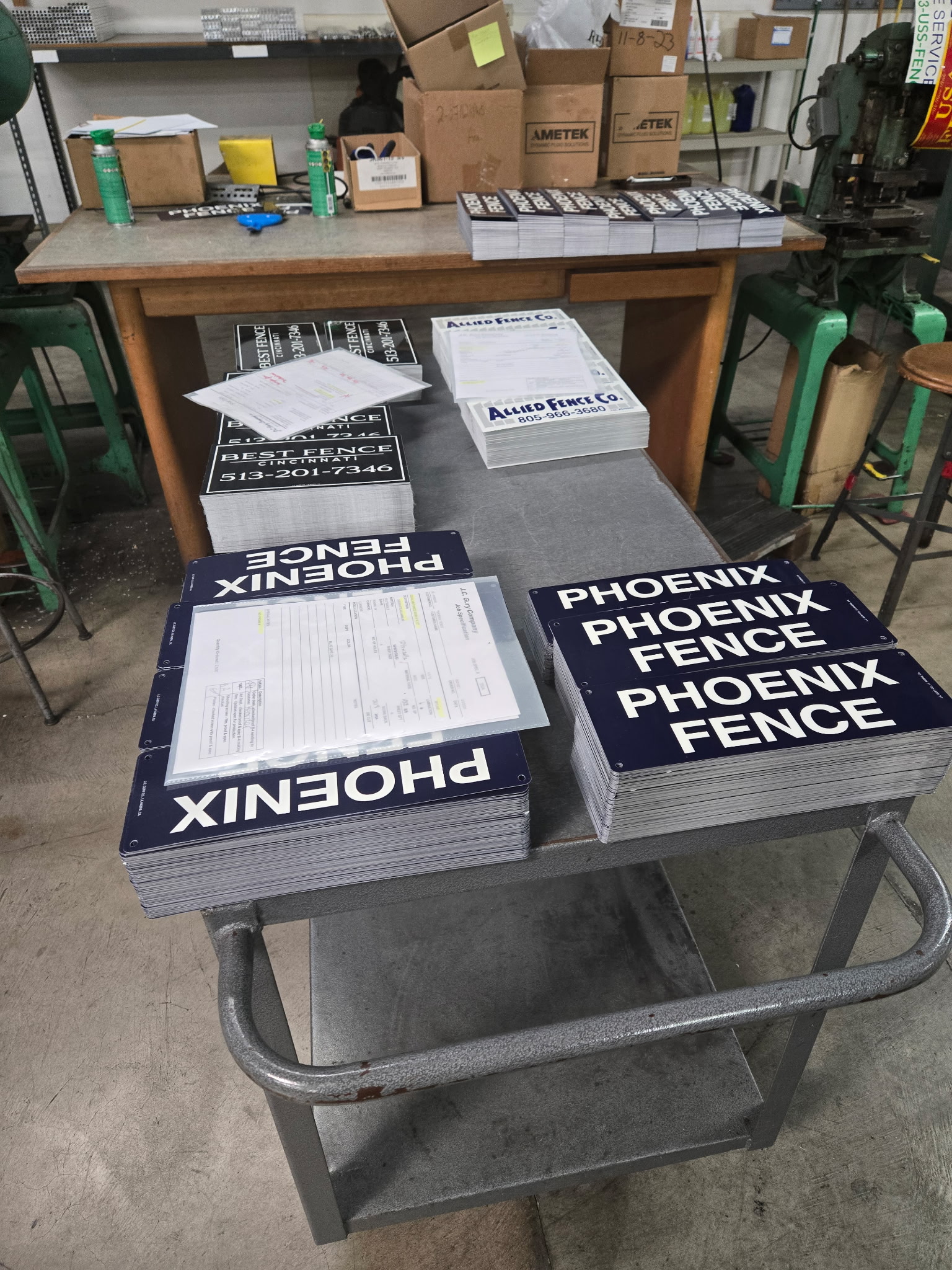 Professional fence sign featuring a rectangle design with 1 color, 4 mounting holes, square corners. Perfect for fence businesses. Get a free quote today!