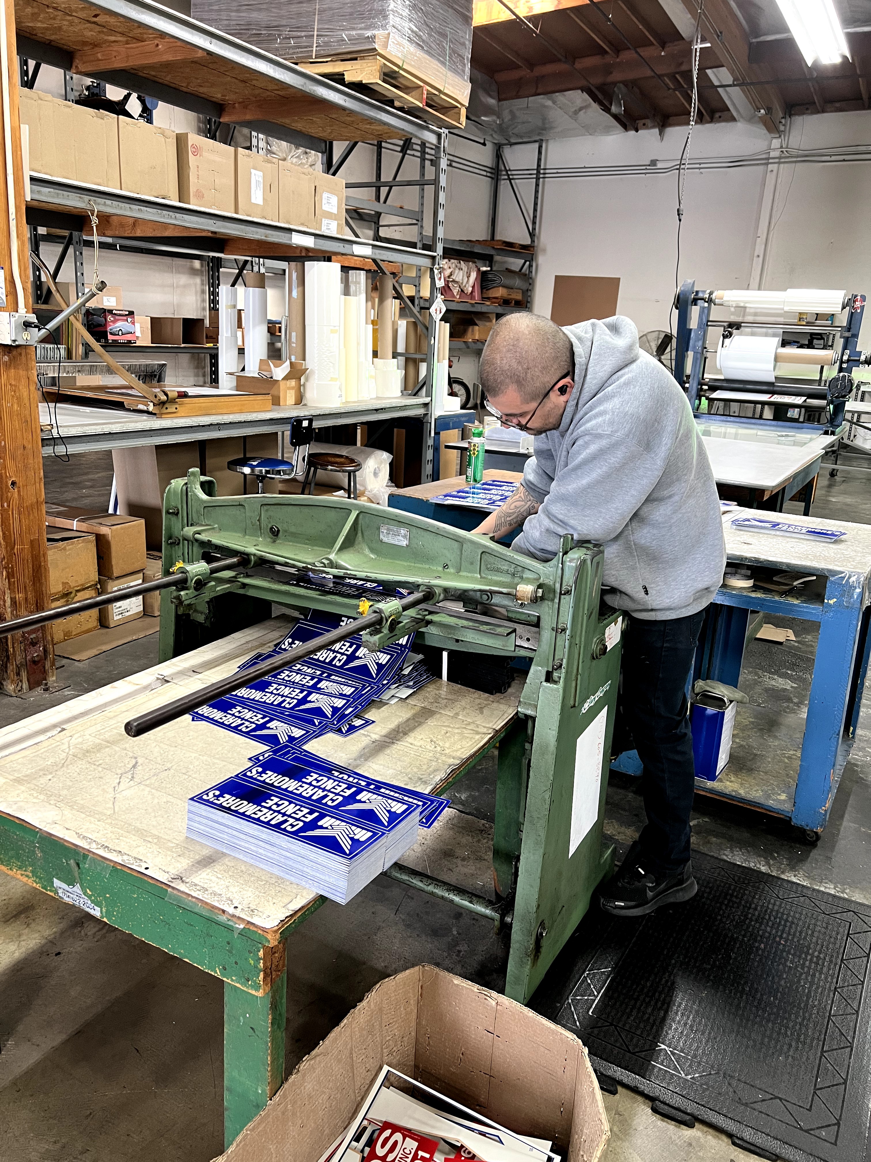 Absolutely! Use our sign designer to customize every aspect including colors, text, fonts, and more. We can match your exact brand colors for a professional look.