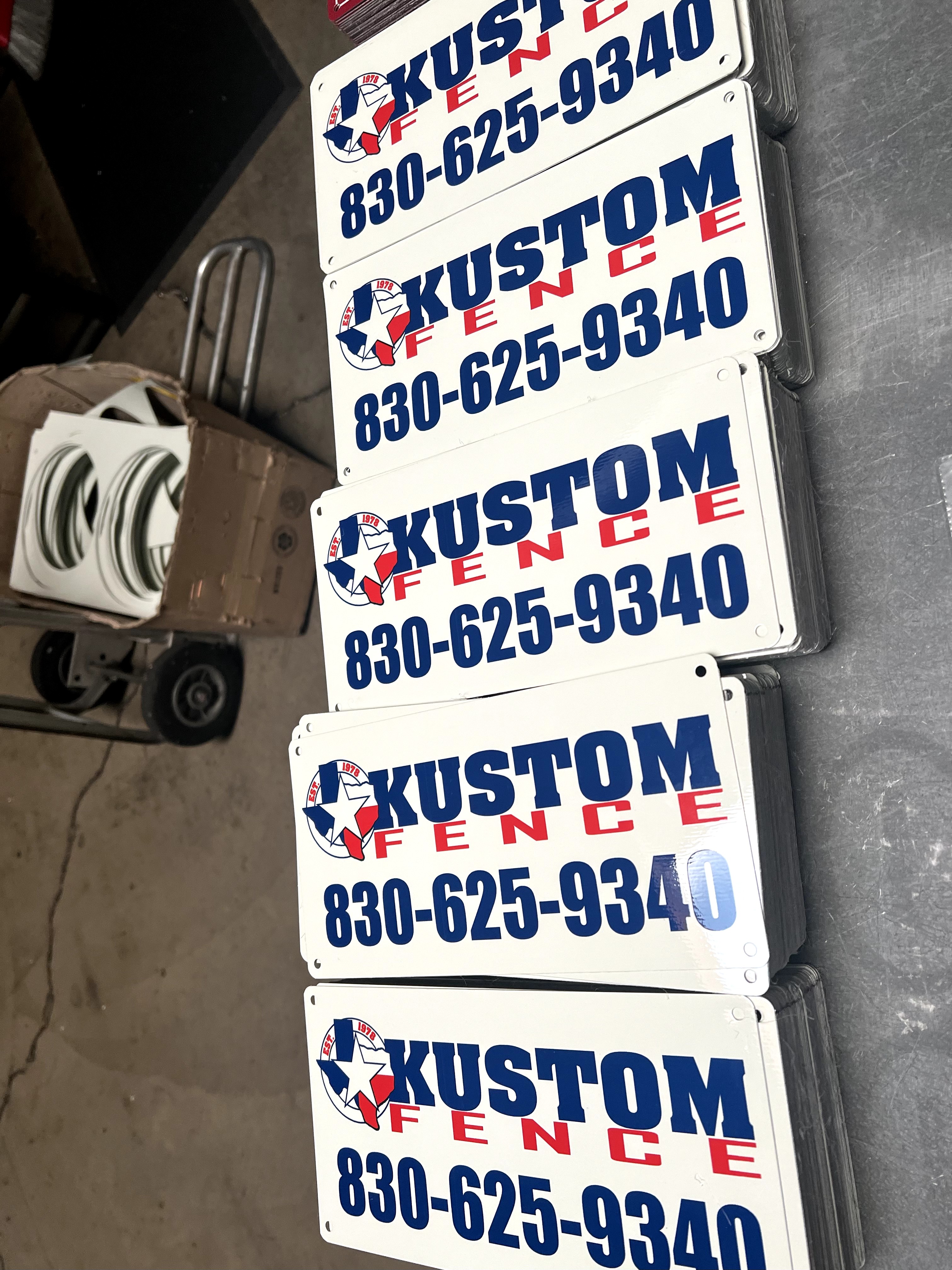 Professional fence sign featuring a rectangle design with 2 colors, 4 mounting holes, rounded corners. Perfect for fence businesses. Get a free quote today!