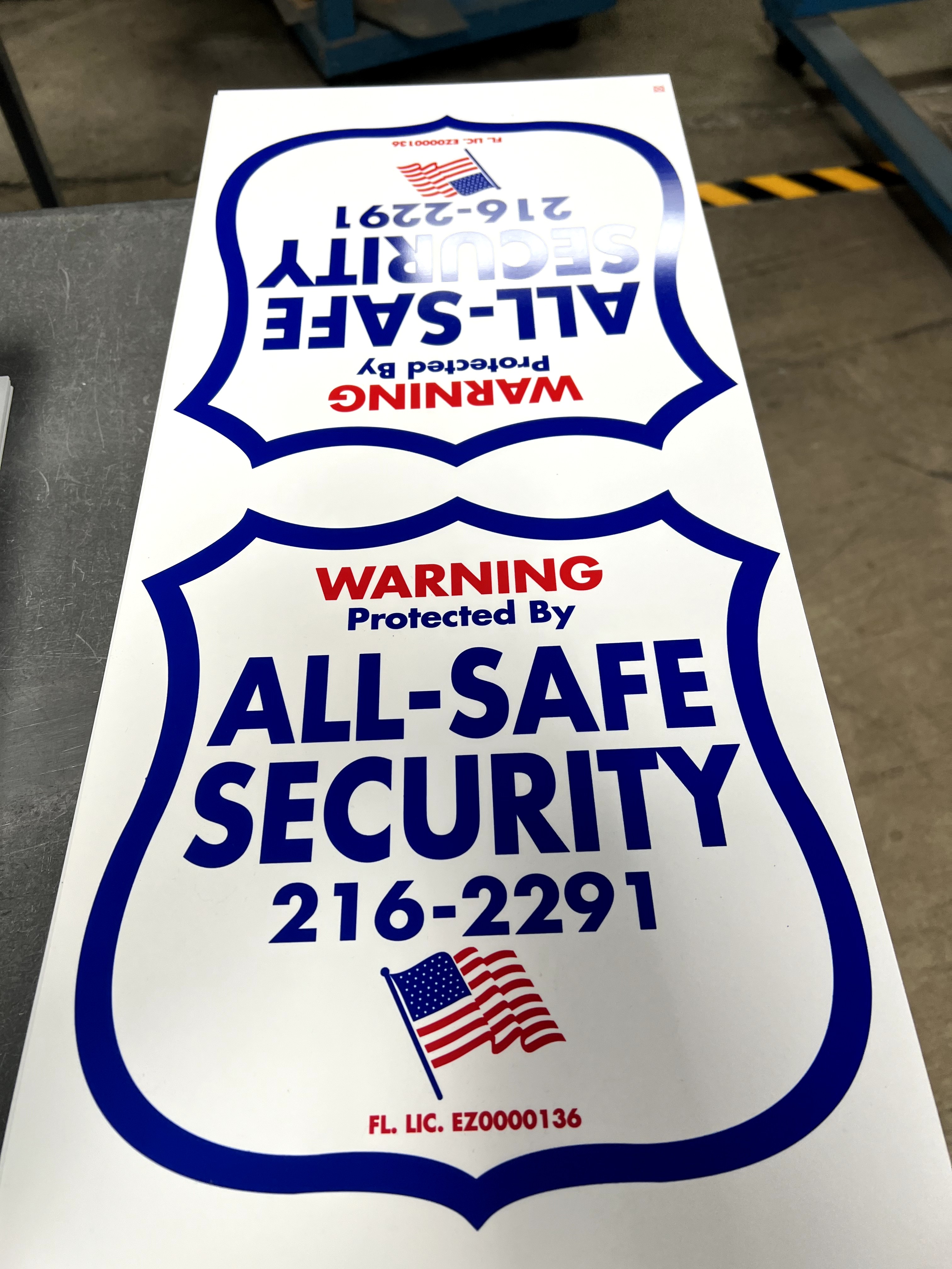 Professional security sign featuring a shield design with 2 colors. Perfect for security businesses. Get a free quote today!