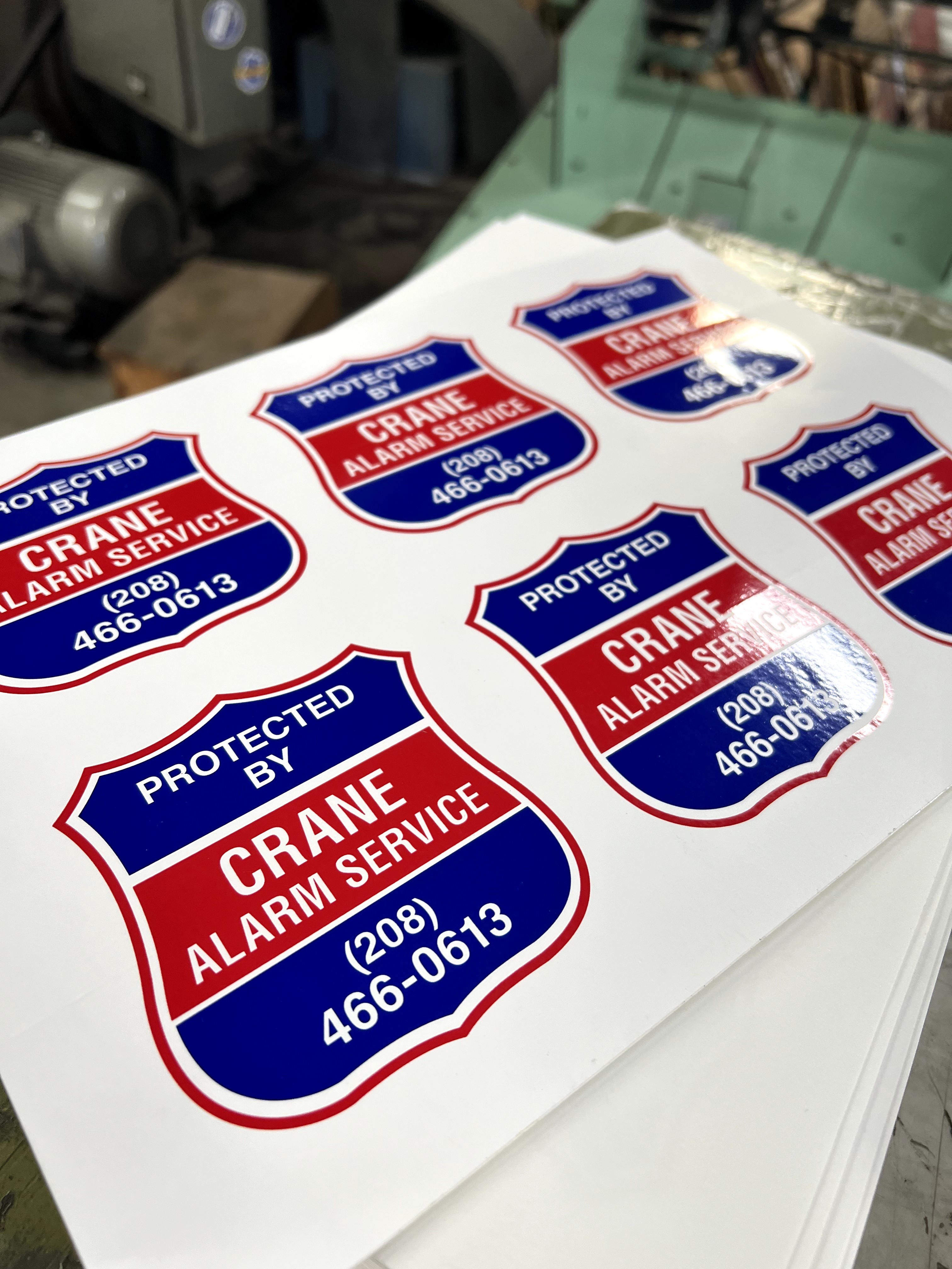 Custom blue and red shield sign for security businesses