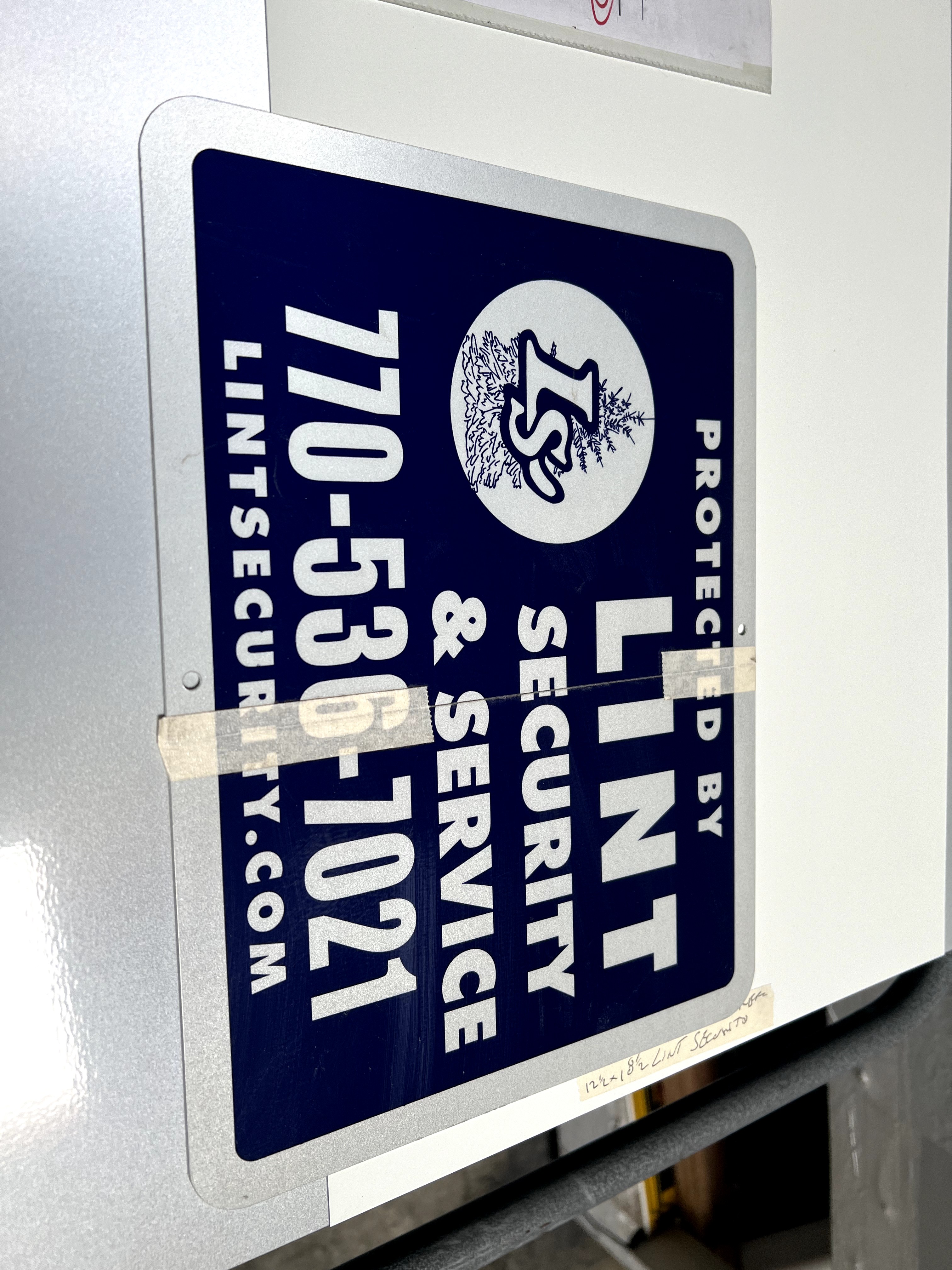 Professional security sign featuring a rounded rectangle design with 2 colors, 4 mounting holes, rounded corners. Perfect for security businesses. Get a free quote today!