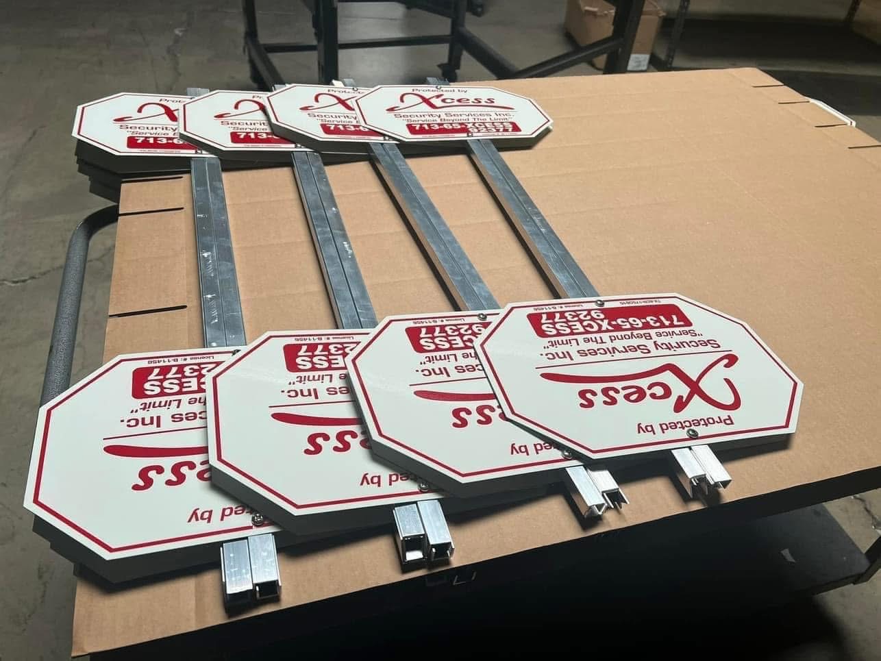 This professional security sign features a classic elongated octagon design with 2 carefully selected colors for maximum visibility and brand recognition. Equipped with 2 pre-drilled mounting holes for easy fence or post installation, This sign is perfect for security businesses looking to establish a professional presence.