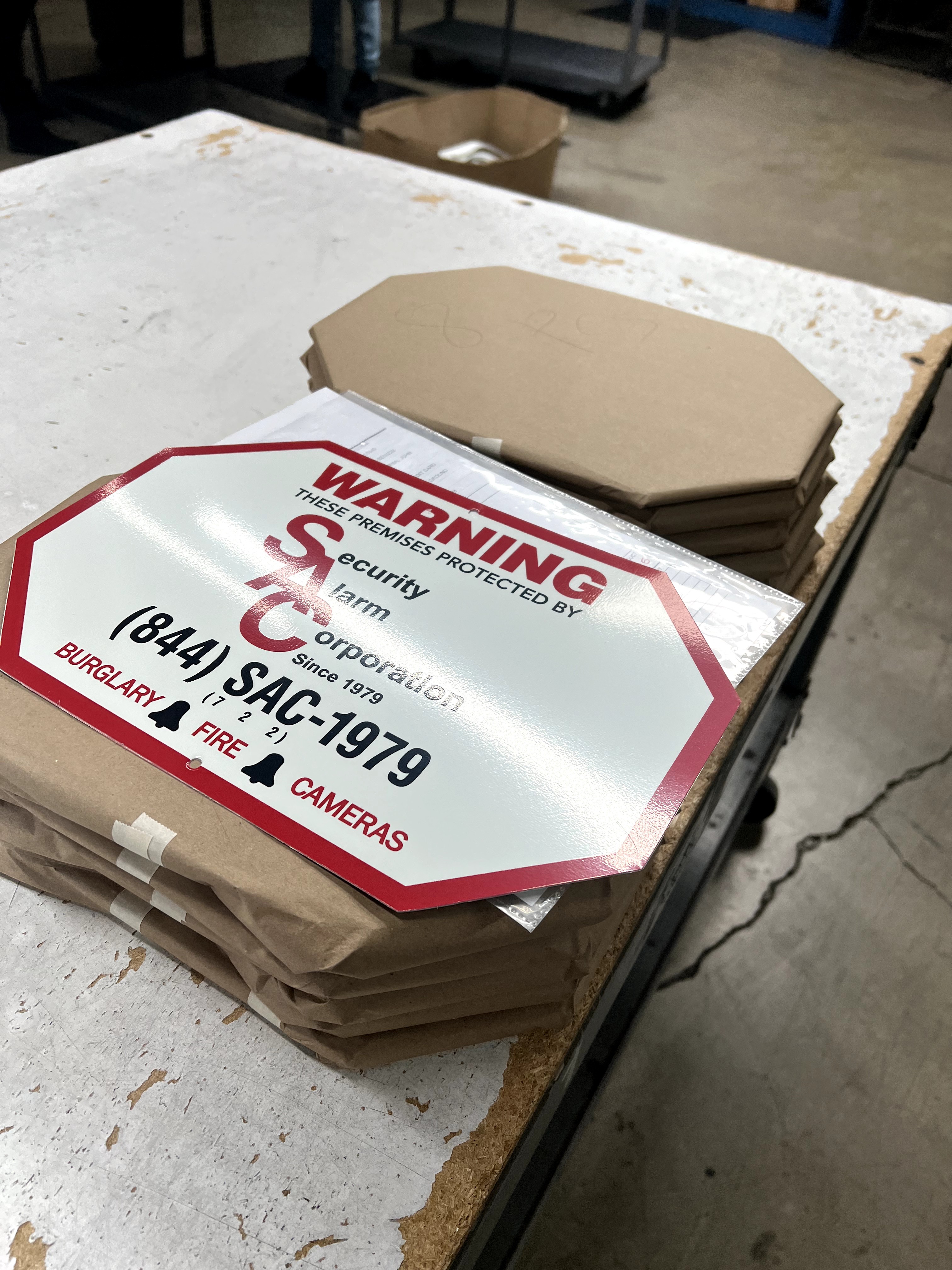 Professional security sign featuring a elongated octagon design with 2 colors. Perfect for security businesses. Get a free quote today!