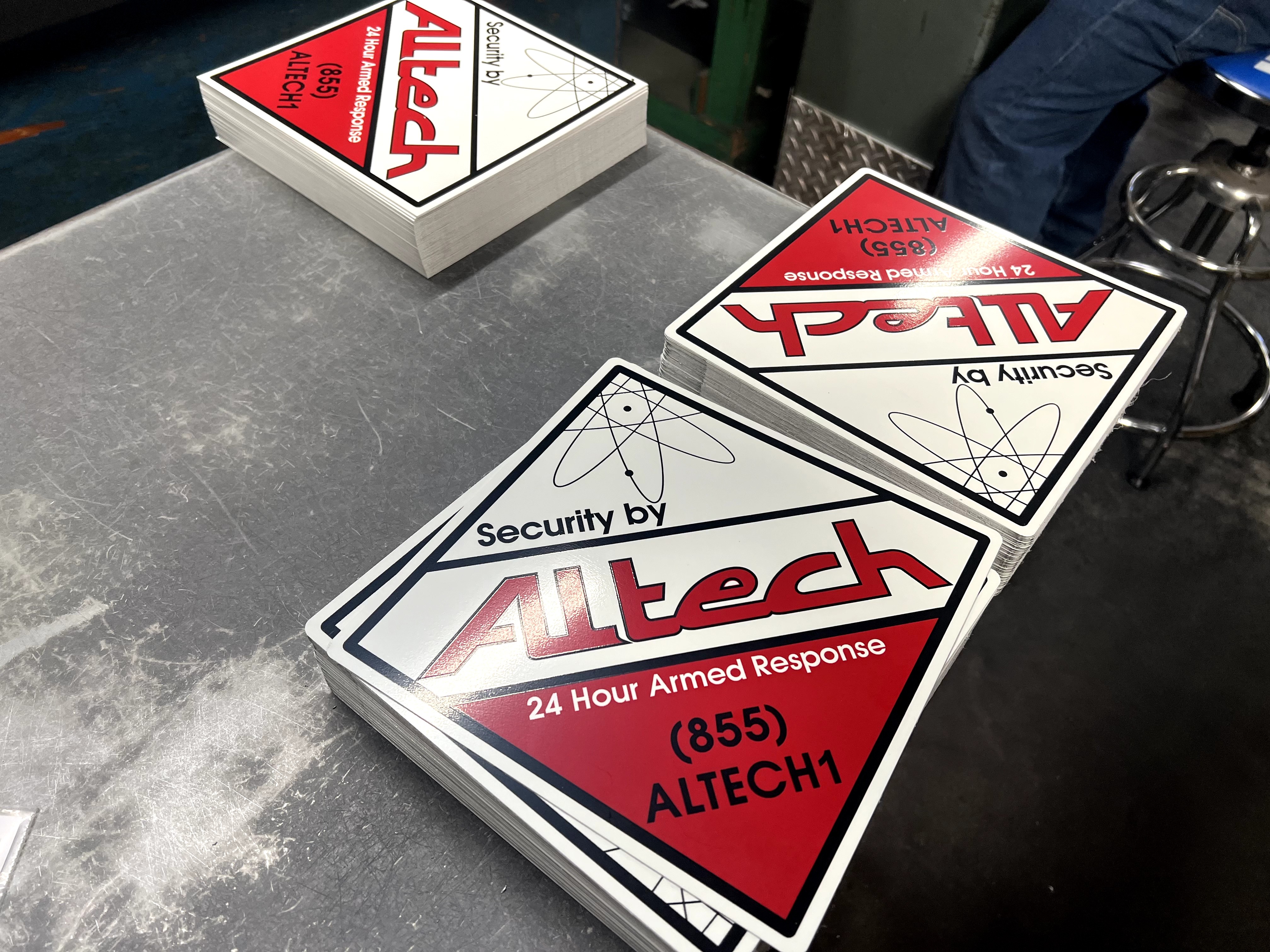 Our shield signs are made from durable aluminum or high-quality plastic, depending on your preference. Both options are weather-resistant and designed for long-term outdoor use.