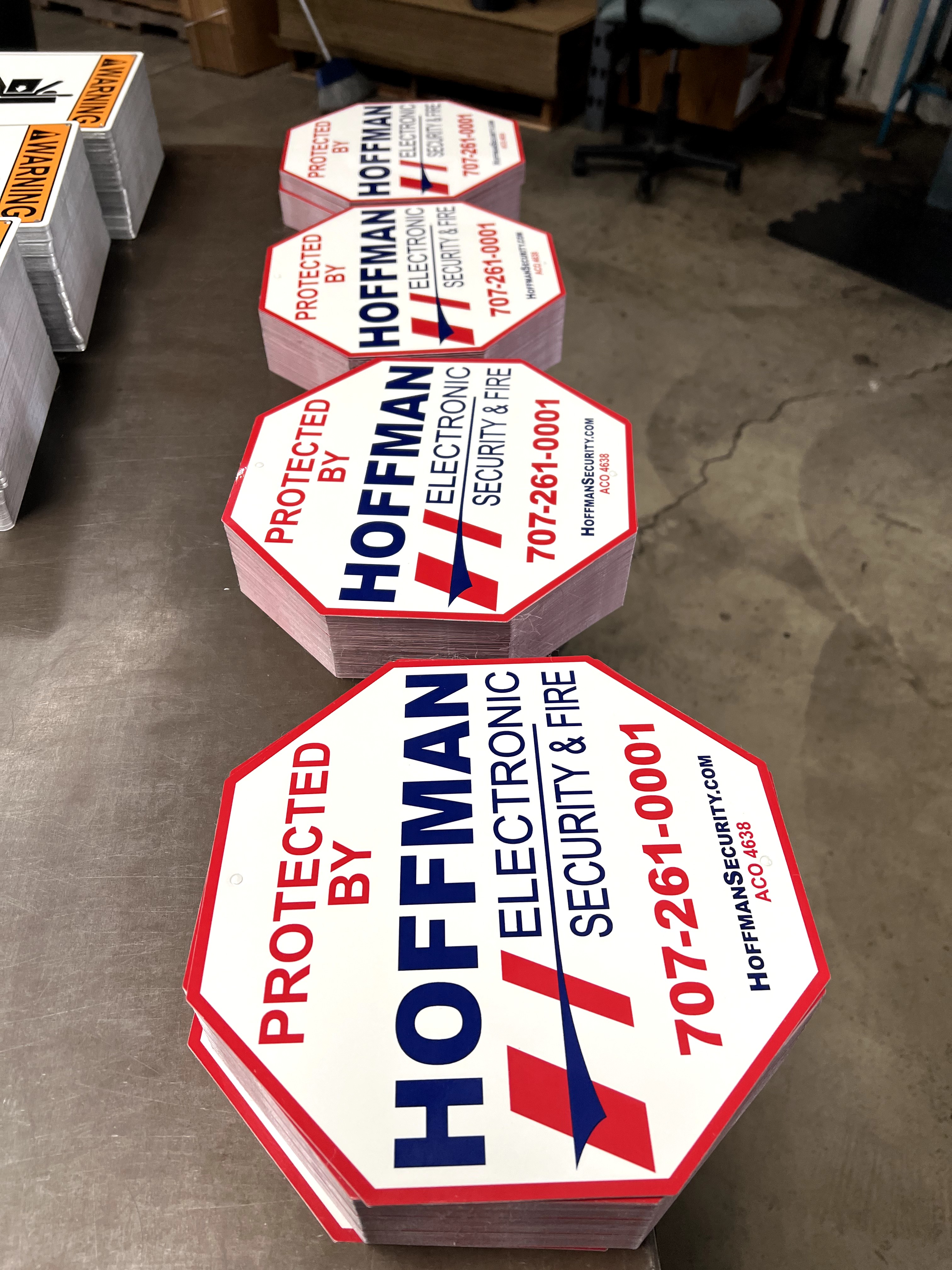 Custom crimson and blue octagon sign for security businesses