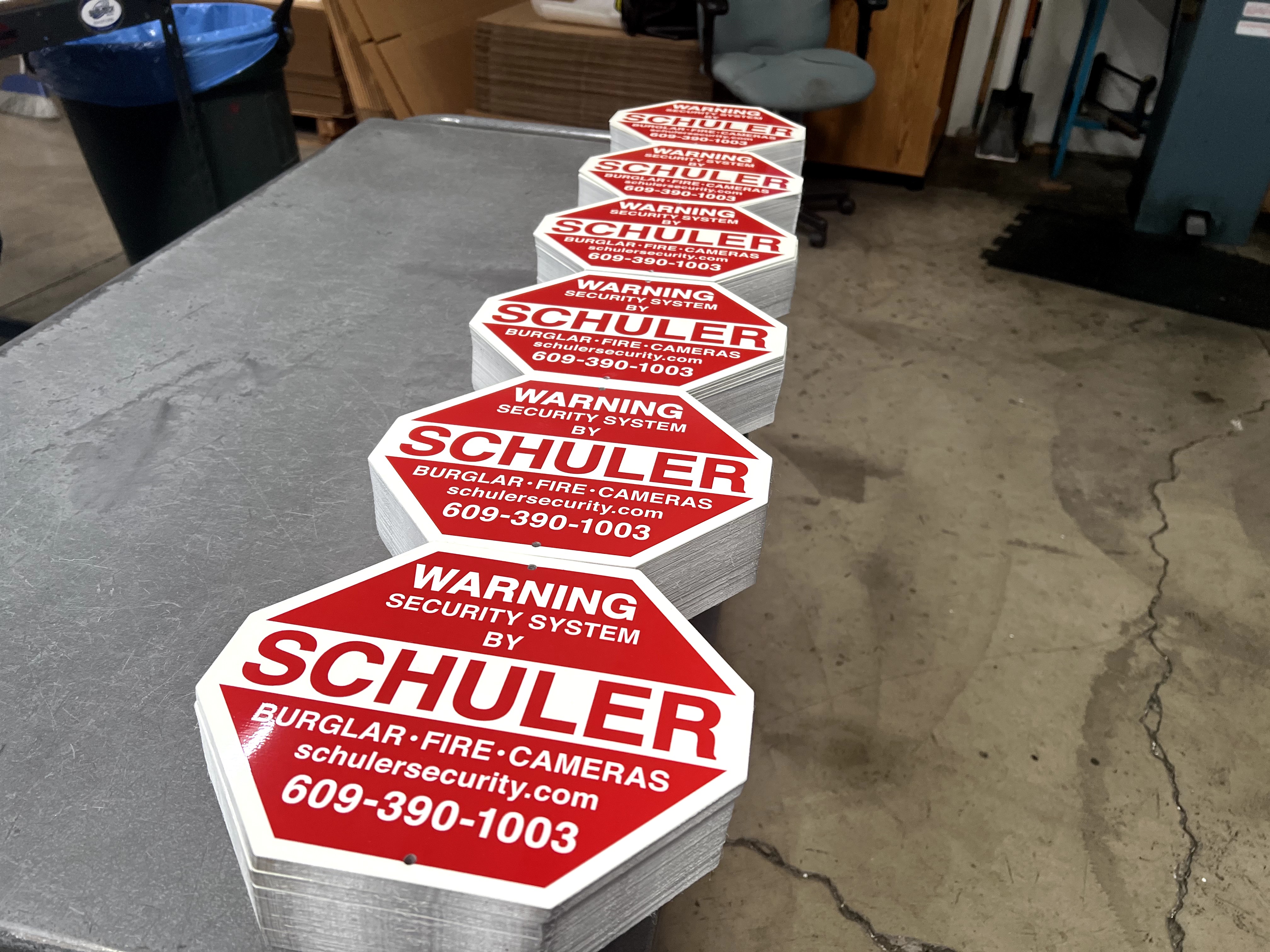 Custom crimson and white octagon sign for security businesses