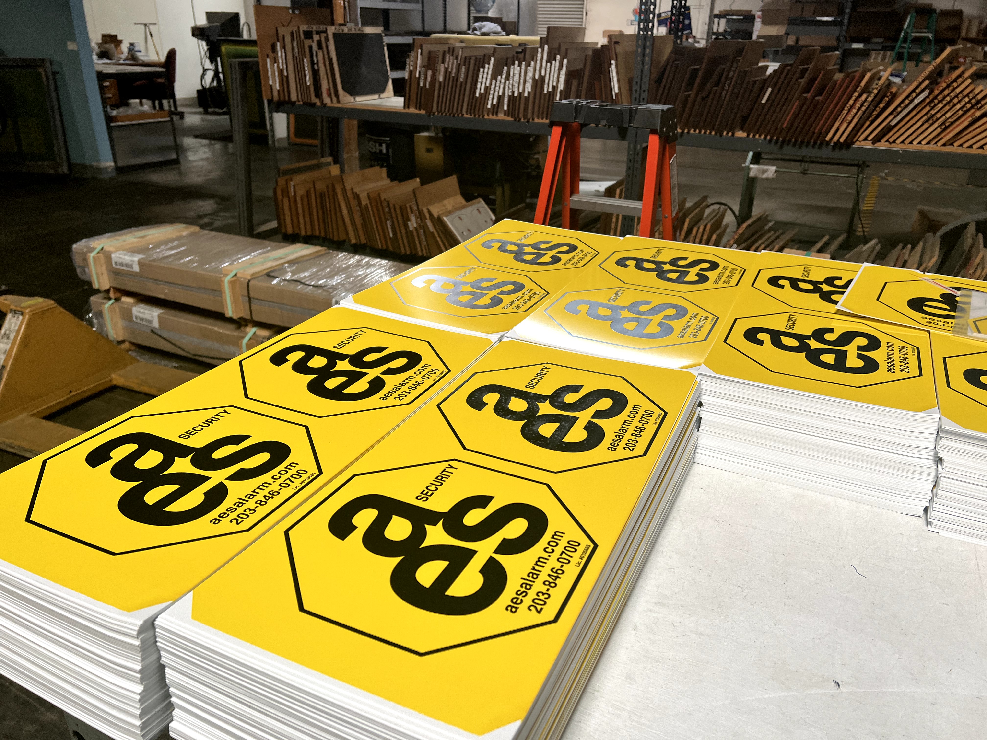 Professional security sign featuring a elongated octagon design with 2 colors. Perfect for security businesses. Get a free quote today!