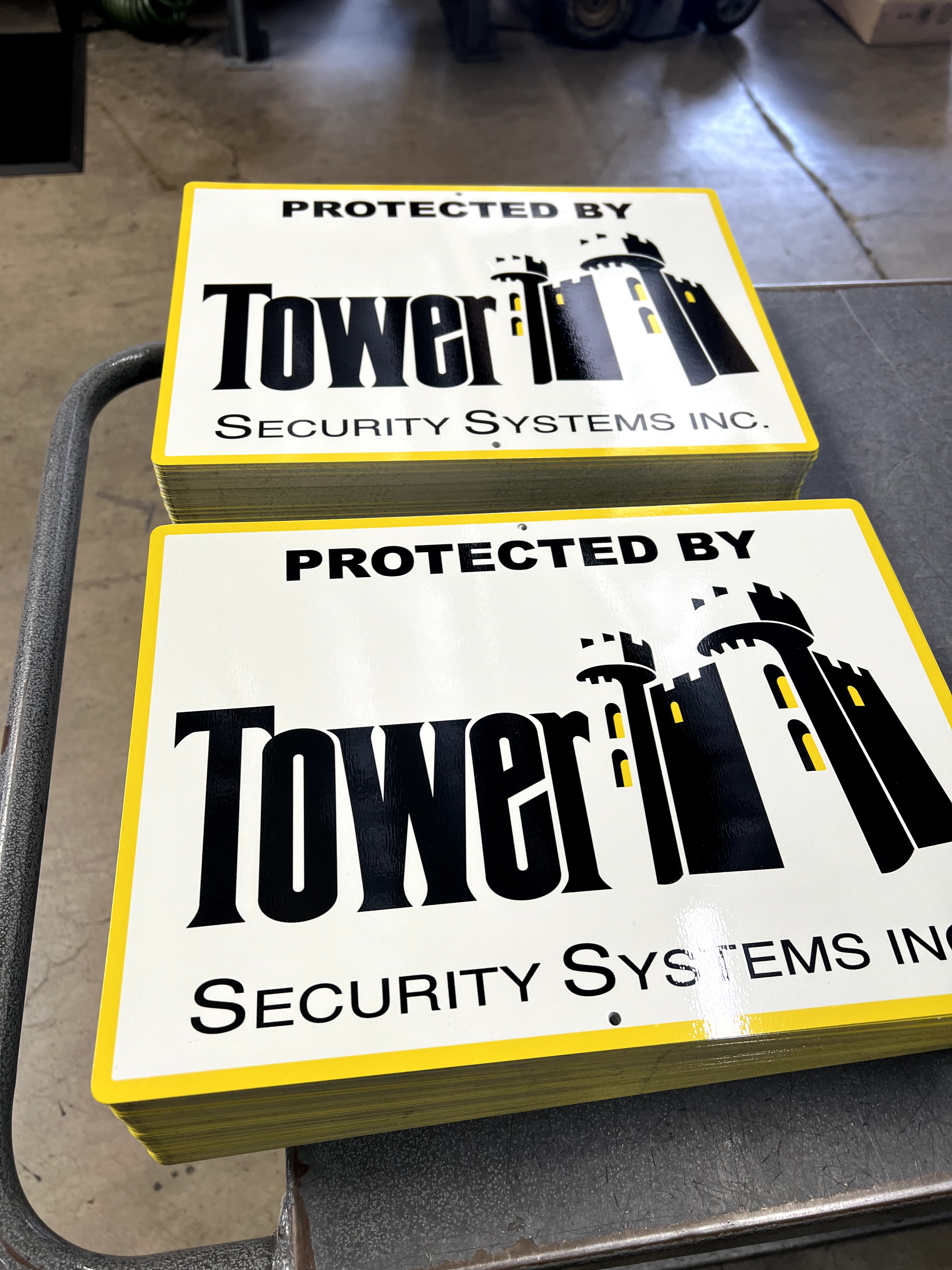 Custom gold and black rectangle sign for security businesses