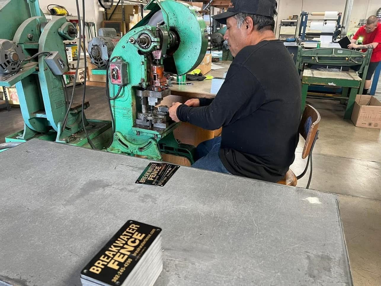 Professional fence sign featuring a rectangle design with 2 colors, square corners. Perfect for fence businesses. Get a free quote today!