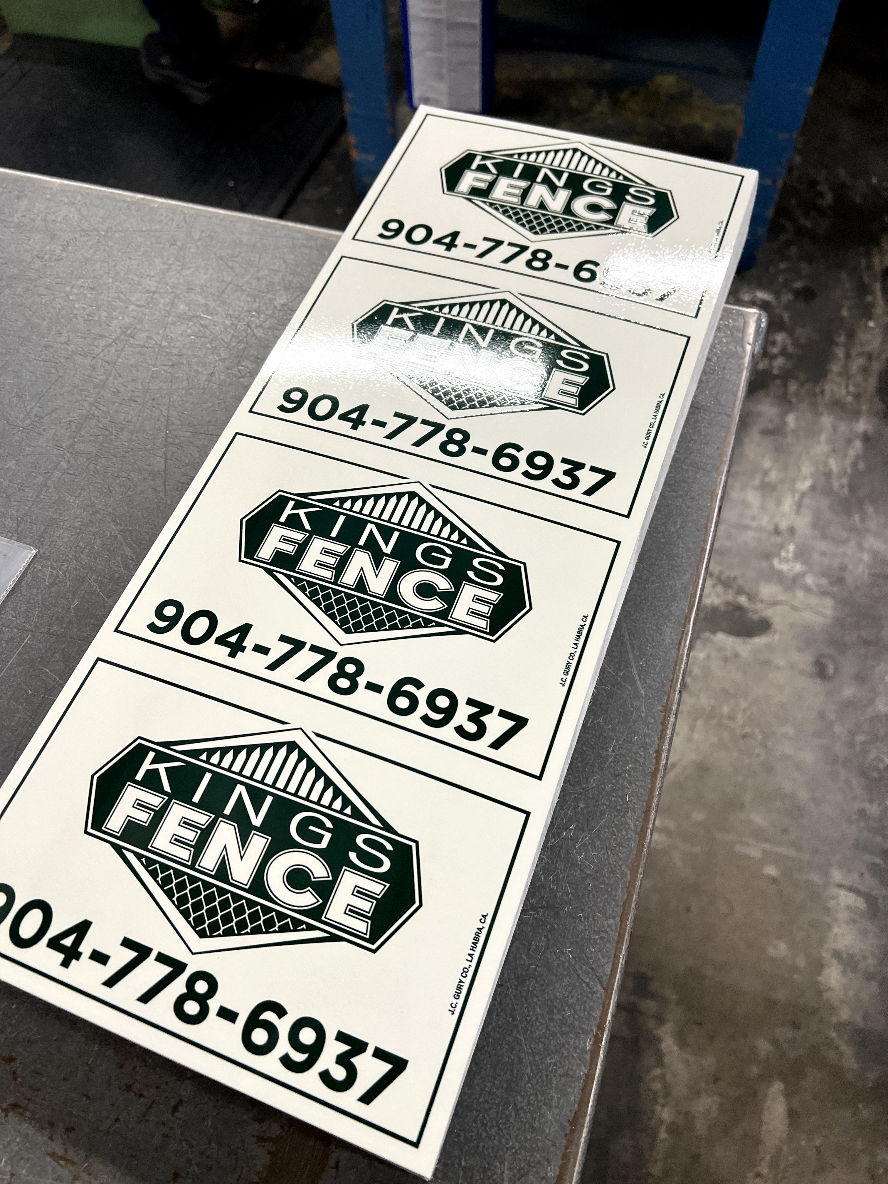Professional fence sign featuring a rectangle design with 1 color, square corners. Perfect for fence businesses. Get a free quote today!