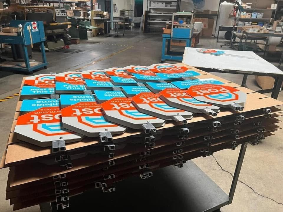Absolutely! Use our sign designer to customize every aspect including colors, text, fonts, and more. We can match your exact brand colors for a professional look.
