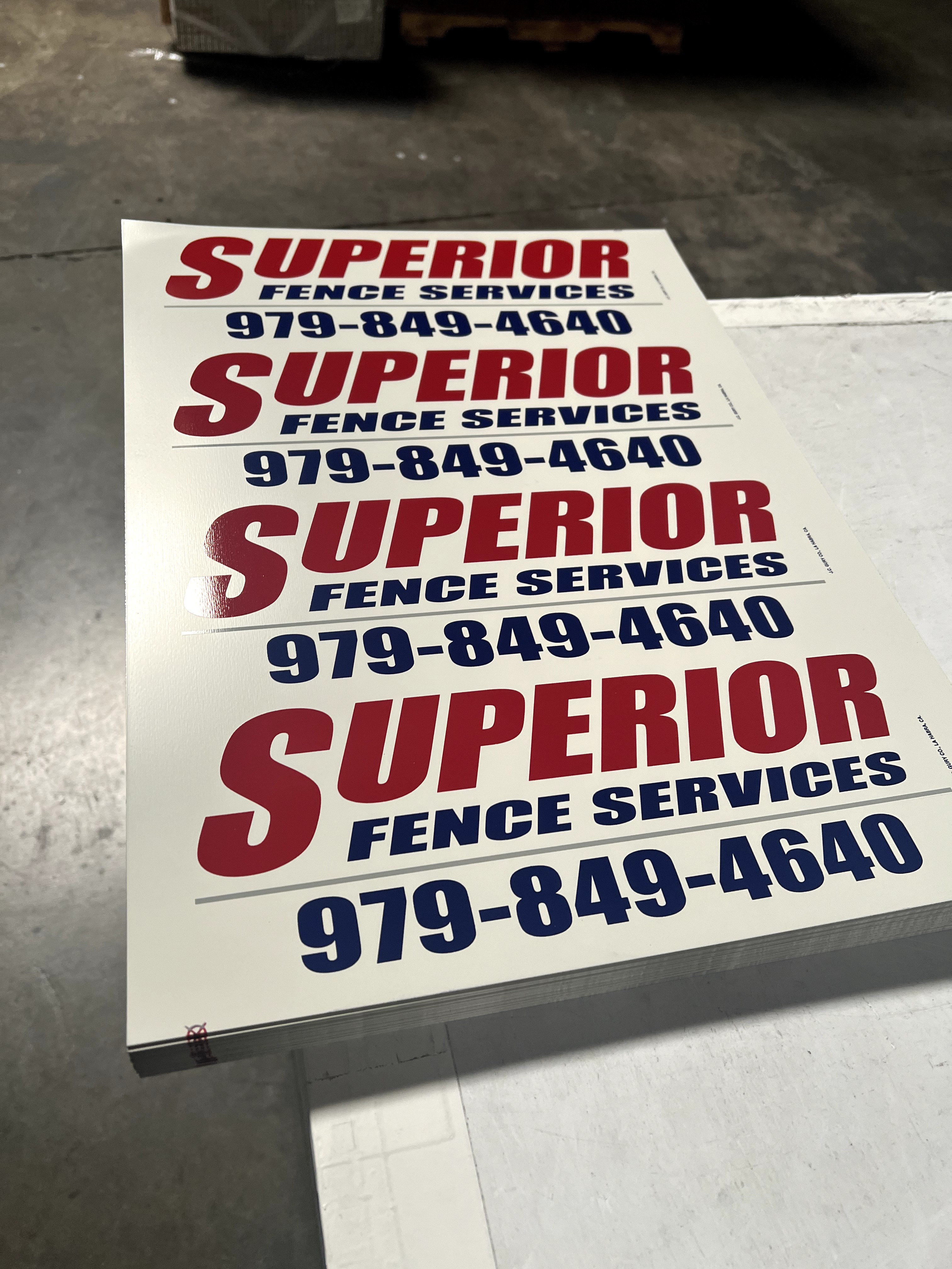 Professional fence sign featuring a rectangle design with 2 colors, square corners. Perfect for fence businesses. Get a free quote today!
