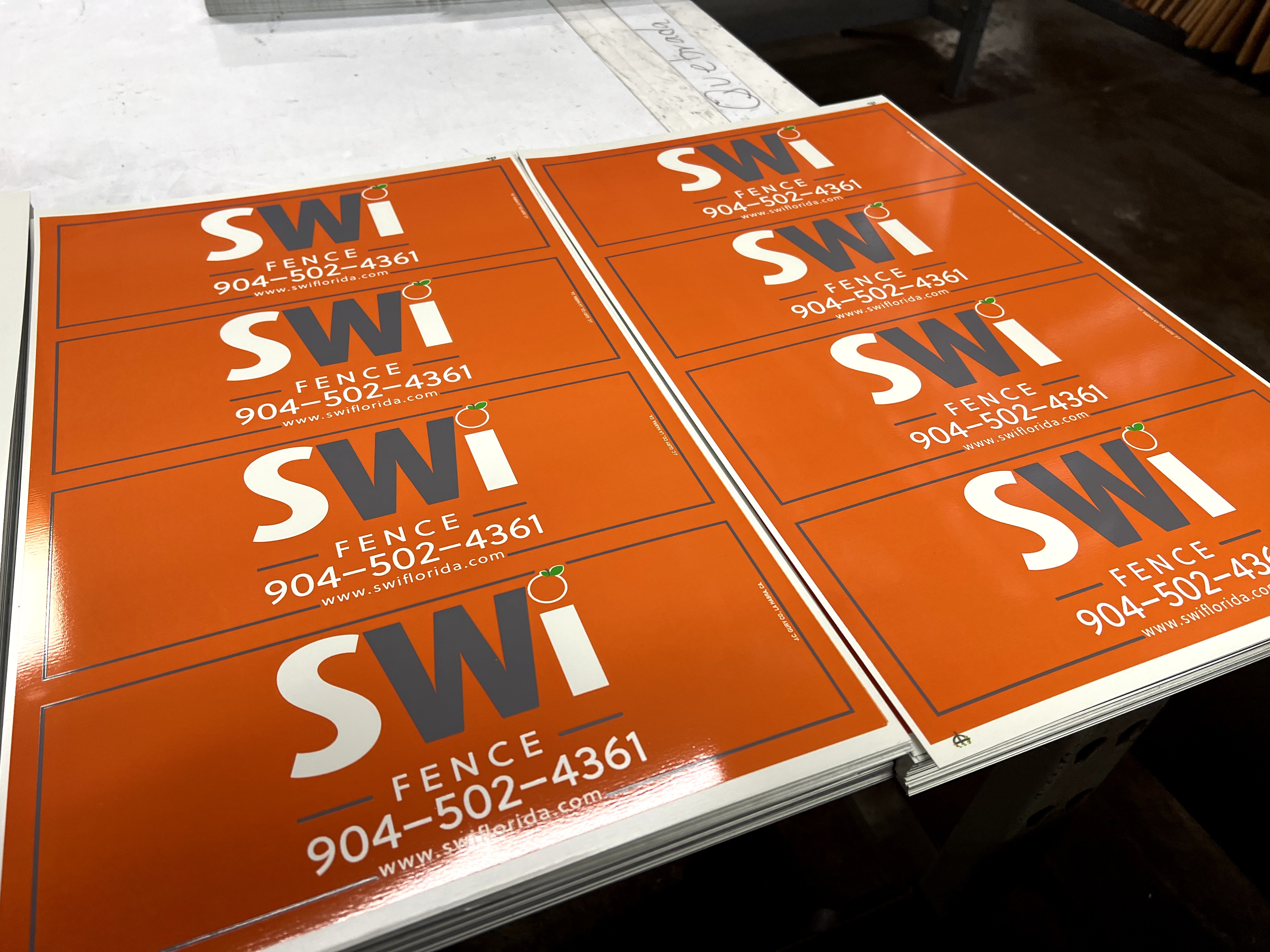 Custom red and gray rectangle sign for fence businesses