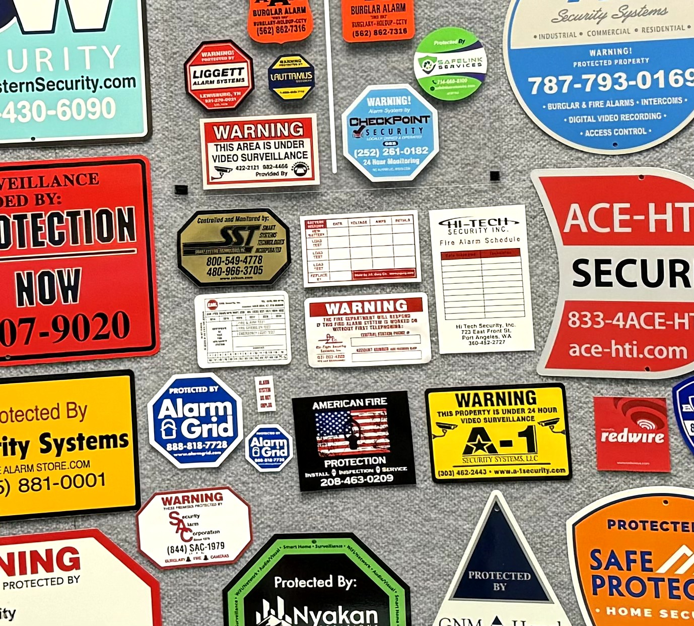Professional security sign featuring a octagon design with 2 colors, 4 mounting holes. Perfect for security businesses. Get a free quote today!