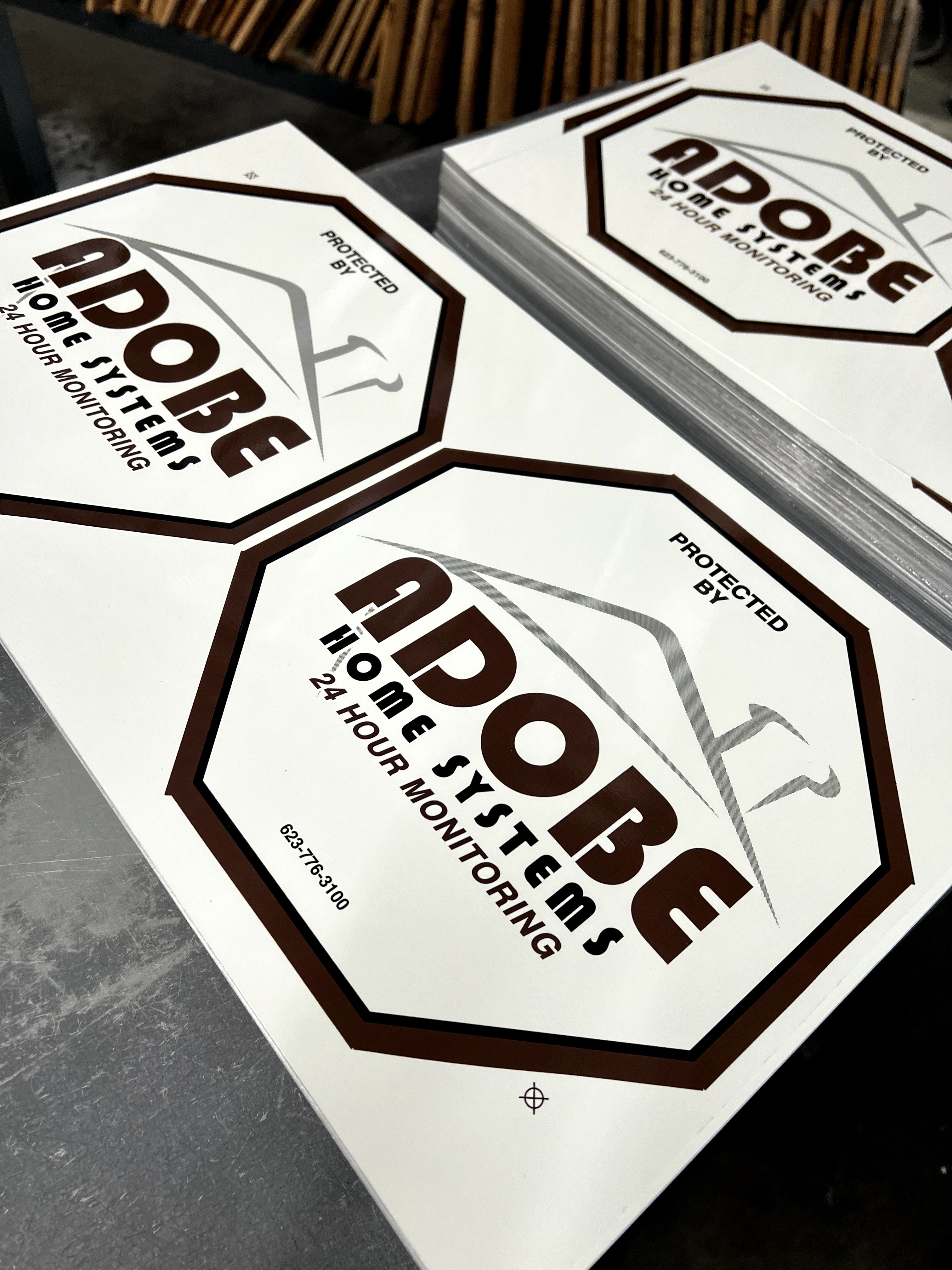 Professional security sign featuring a elongated octagon design with 2 colors. Perfect for security businesses. Get a free quote today!